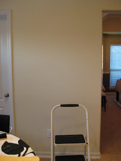 Last I wanted to add a few small circles and did this by using the red charger plate shown above. Simply trace the plate on the wall and go back over the lines with the 2" angle brush.
